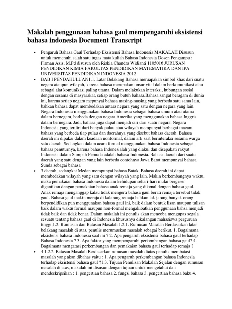 Makalah Penggunaan Bahasa Gaul Mempengaruhi Eksistensi Bahasa Indonesia Document Transcript Pdf